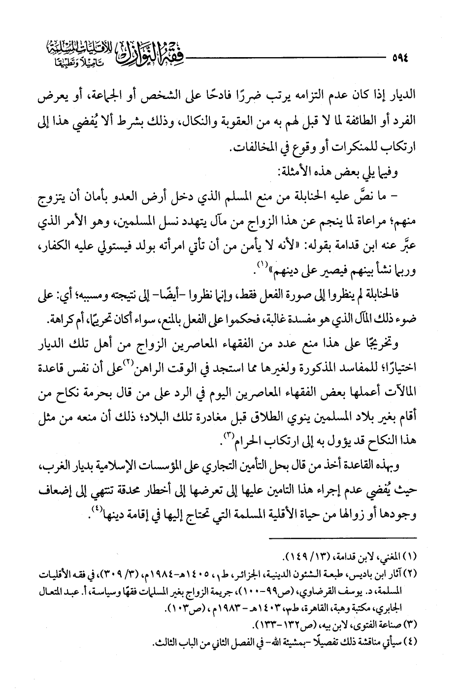 (¬2) آثار ابن باديس، طبعة الشئون الدينية، الجزائر، ط 1، 1405 هـ - 1984 م، (3/ 309)، في فقه الأقليات المسلمة، د. يوسف القرضاوي، (ص 99 - 100)، جريمة الزواج بغير المسلمات فقهًا وسياسة، أ. عبد المتعال الجابري، مكتبة وهبة، القاهرة، ط 3، 1403 هـ - 1983 م، (ص 103).