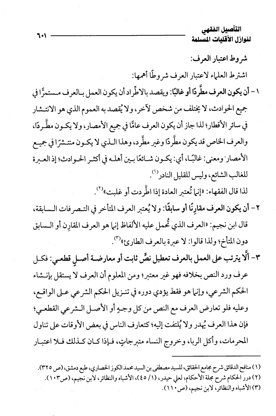 3 - ألَّا يترتب على العمل بالعرف تعطيل نصٍّ ثابت أو معارضة أصلٍ قطعي: