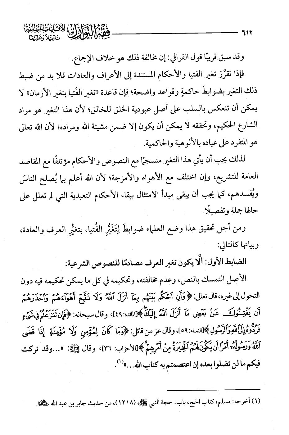 ومن أجل تحقيق هذا وضع العلماء ضوابطَ لِتَغَيُّرِ الفُتيا، بتغيُّرِ العرف والعادة، وبيانها كالتالي: