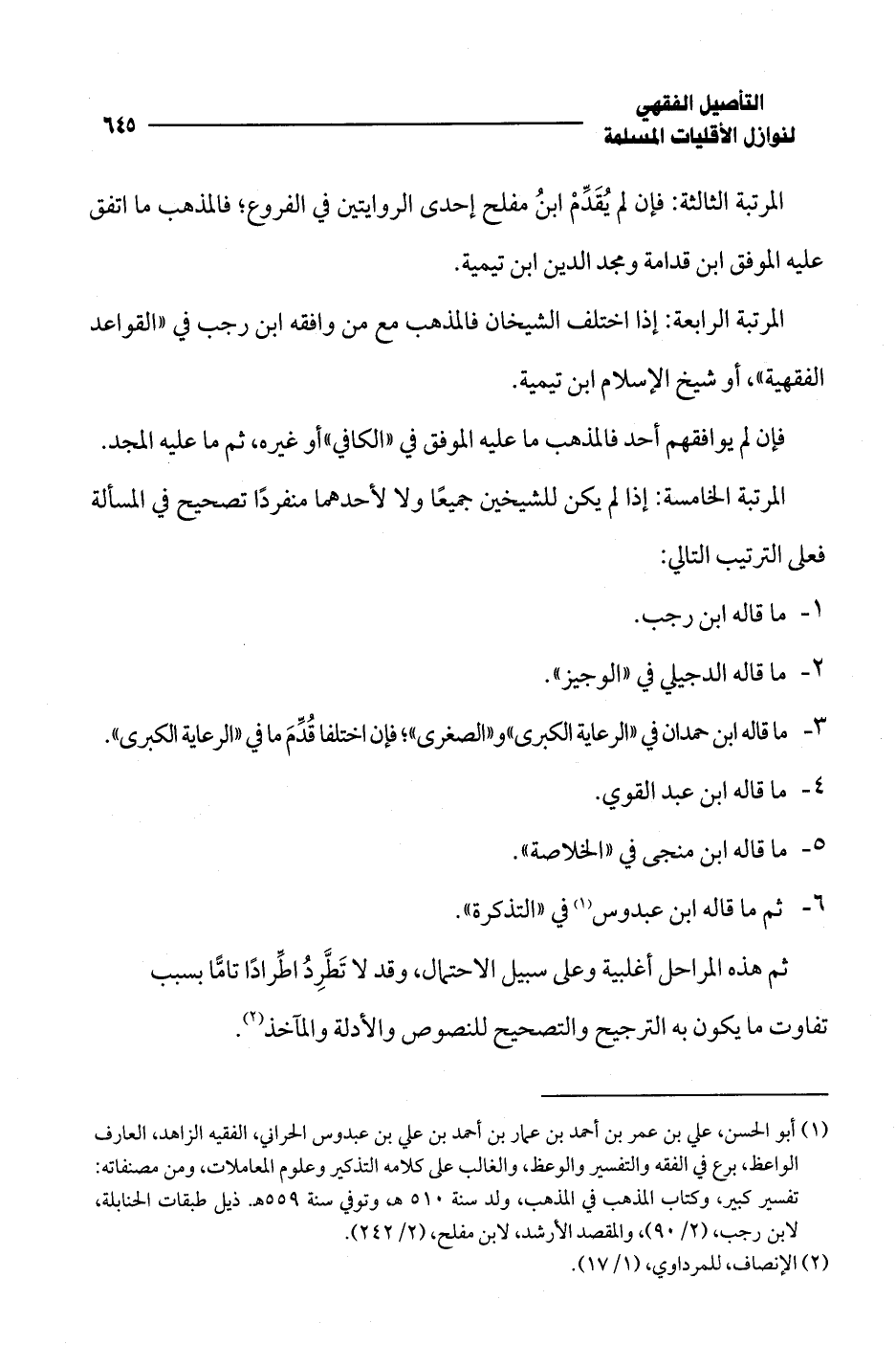 المرتبة الرابعة: إذا اختلف الشيخان فالمذهب مع من وافقه ابن رجب في "القواعد الفقهية"، أو شيخ الإسلام ابن تيمية.
