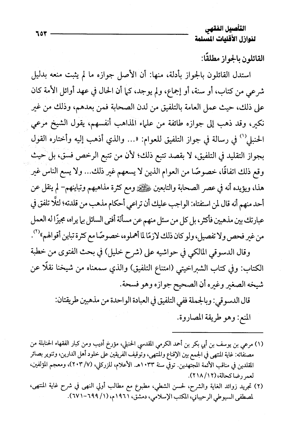 (¬2) تجريد زوائد الغاية والشرح، لحسن الشطي، مطبوع مع مطالب أولي النهى في شرح غاية المنتهى، لمصطفى السيوطي الرحيباني، المكتب الإسلامي، دمشق، 1961 م، (1/ 699 - 671).