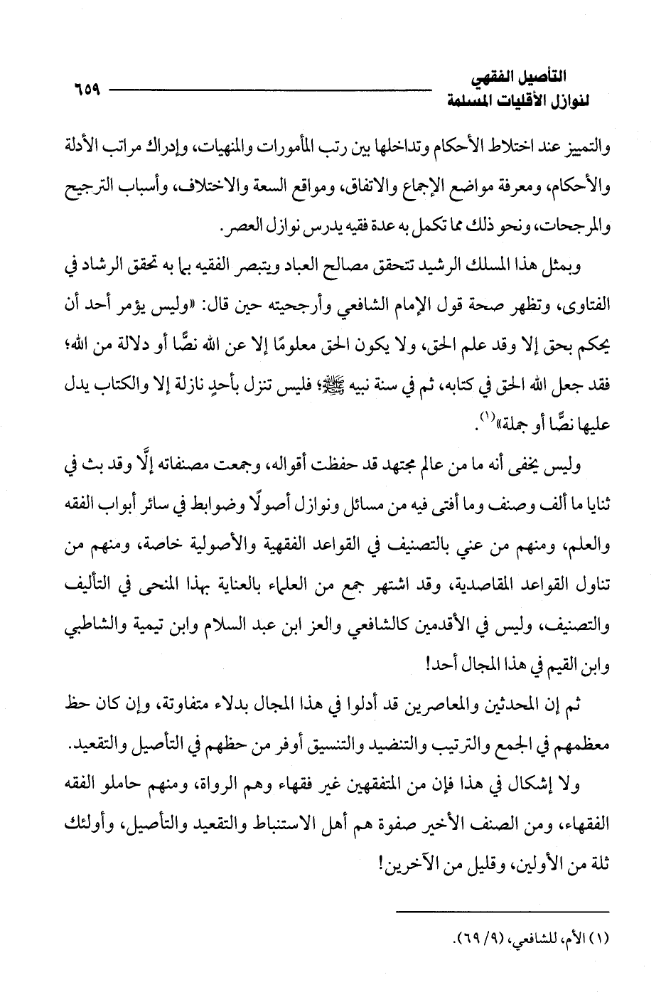 والتمييز عند اختلاط الأحكام وتداخلها بين رتب المأمورات والمنهيات، وإدراك مراتب الأدلة والأحكام، ومعرفة مواضع الإجماع والاتفاق، ومواقع السعة والاختلاف، وأسباب الترجيح والمرجحات، ونحو ذلك مما تكمل به عدة فقيه يدرس نوازل العصر.