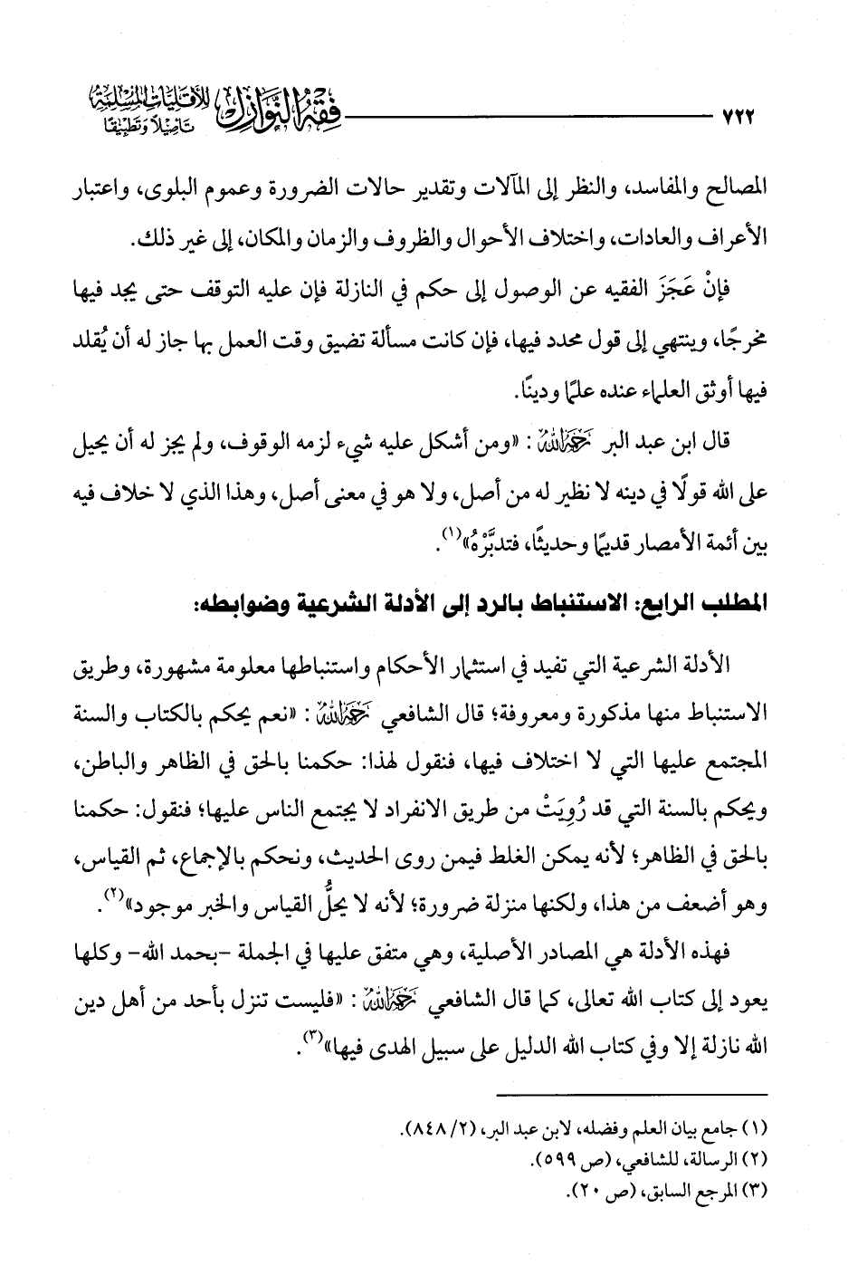 المطلب الرابع: الاستنباط بالرد إلى الأدلة الشرعية وضوابطه: