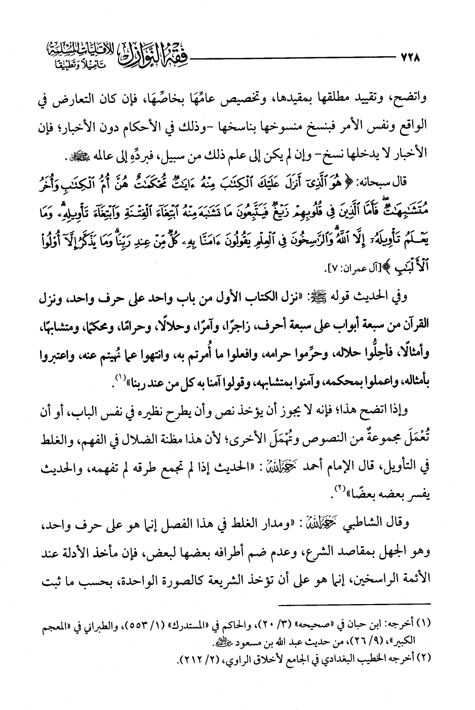 قال سبحانه: {هُوَ الَّذِي أَنْزَلَ عَلَيْكَ الْكِتَابَ مِنْهُ آيَاتٌ مُحْكَمَاتٌ هُنَّ أُمُّ الْكِتَابِ وَأُخَرُ مُتَشَابِهَاتٌ فَأَمَّا الَّذِينَ فِي قُلُوبِهِمْ زَيْغٌ فَيَتَّبِعُونَ مَا تَشَابَهَ مِنْهُ ابْتِغَاءَ الْفِتْنَةِ وَابْتِغَاءَ تَأْوِيلِهِ وَمَا يَعْلَمُ تَأْوِيلَهُ إِلَّا اللَّهُ وَالرَّاسِخُونَ فِي الْعِلْمِ يَقُولُونَ آمَنَّا بِهِ كُلٌّ مِنْ عِنْدِ رَبِّنَا وَمَا يَذَّكَّرُ إِلَّا أُولُو الْأَلْبَابِ} [آل عمران: 7].