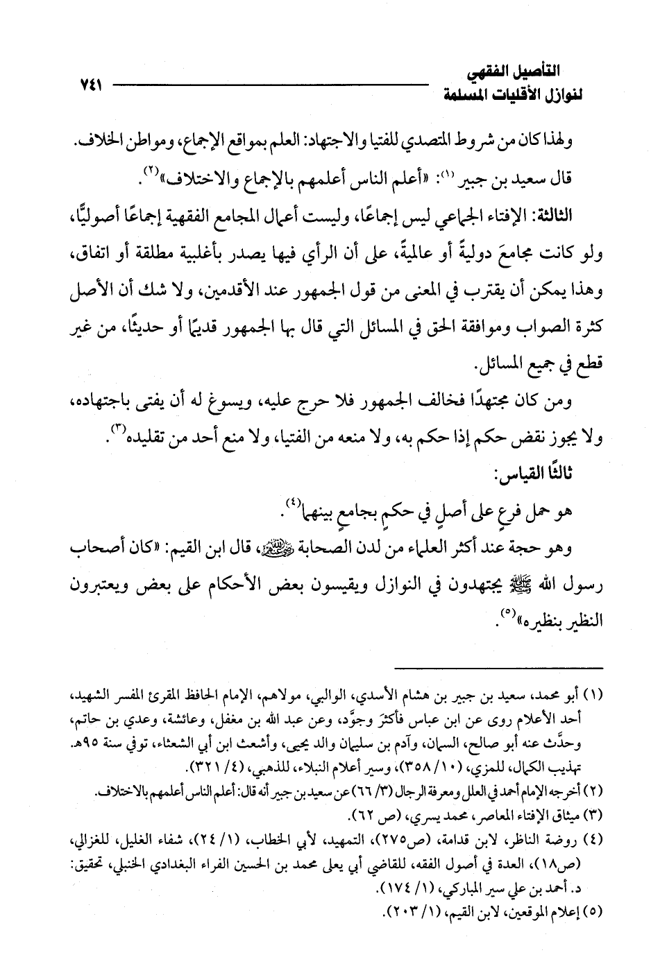 ولهذا كان من شروط المتصدي للفتيا والاجتهاد: العلم بمواقع الإجماع، ومواطن الخلاف. قال سعيد بن جبير (¬1): "أعلم الناس أعلمهم بالإجماع والاختلاف" (¬2).