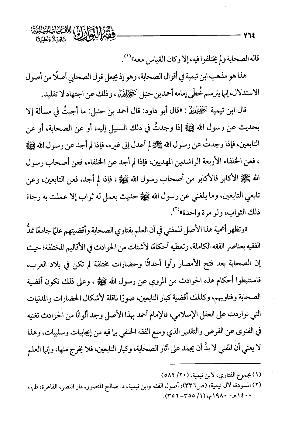 هذا هو مذهب ابن تيمية في أقوال الصحابة، وهو إذ يجعل قول الصحابي أصلًا من أصول الاستدلال، إنما يترسم خُطَى إمامه أحمد بن حنبل -رحمه الله-، وذلك عن اجتهاد لا تقليد.