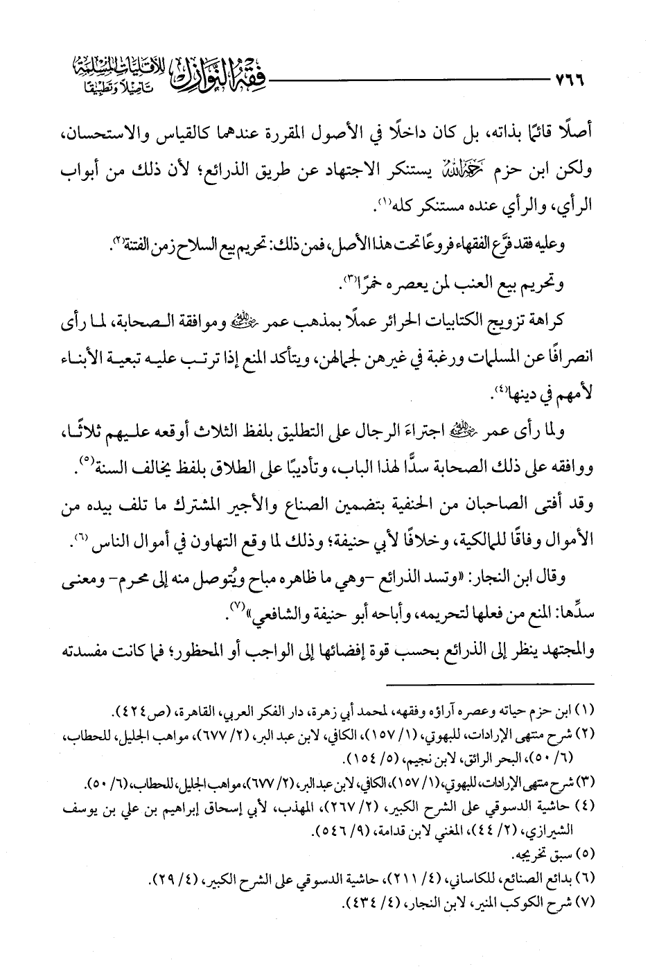 أصلًا قائمًا بذاته، بل كان داخلًا في الأصول المقررة عندهما كالقياس والاستحسان، ولكن ابن حزم -رحمه الله- يستنكر الاجتهاد عن طريق الذرائع؛ لأن ذلك من أبواب الرأي، والرأي عنده مستنكر كله (¬1).