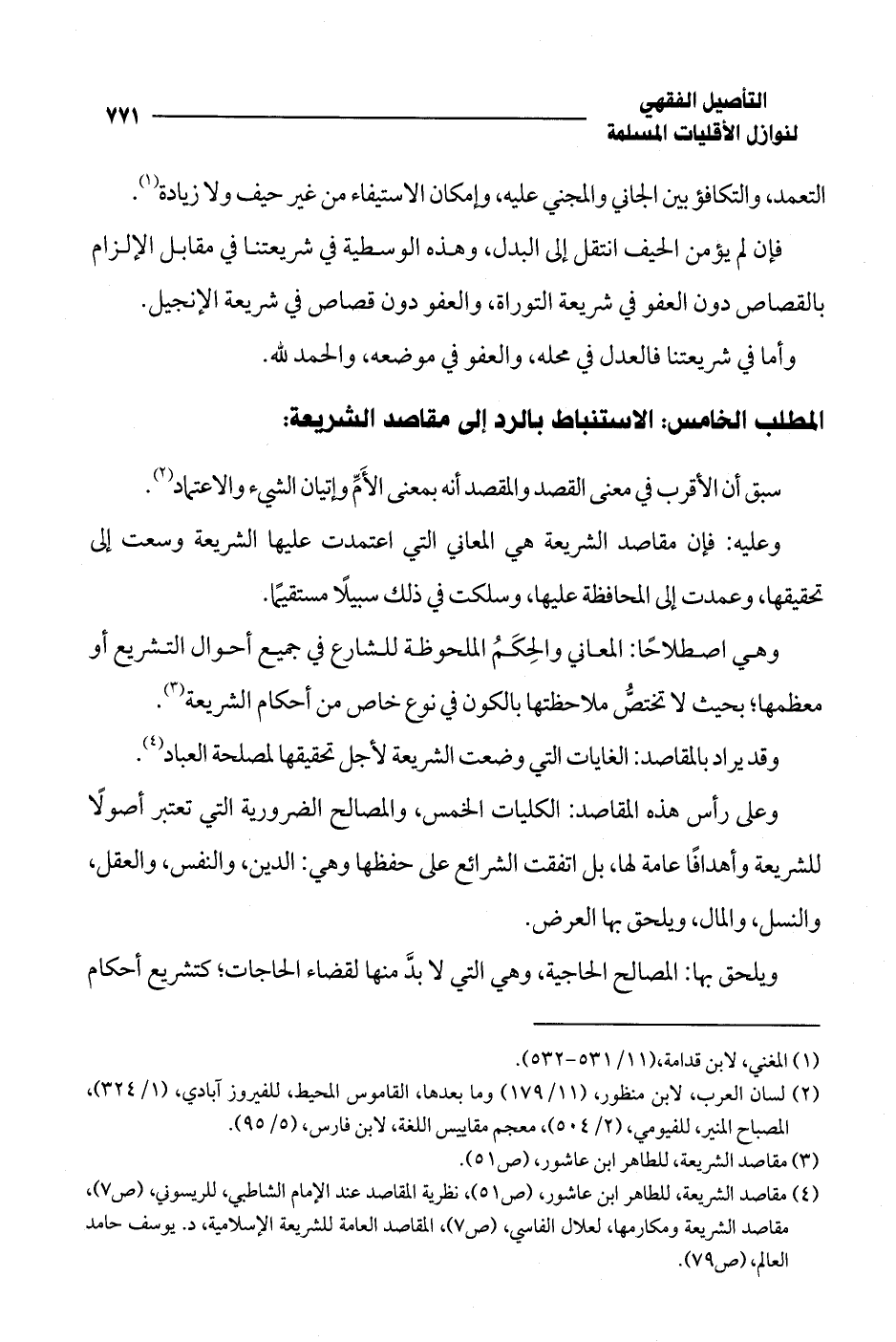 (¬4) مقاصد الشريعة، للطاهر ابن عاشور، (ص 51)، نظرية المقاصد عند الإمام الشاطبي، للريسوني، (ص 7)، مقاصد الشريعة ومكارمها، لعلال الفاسي، (ص 7)، المقاصد العامة للشريعة الإسلامية، د. يوسف حامد العالم، (ص 79).