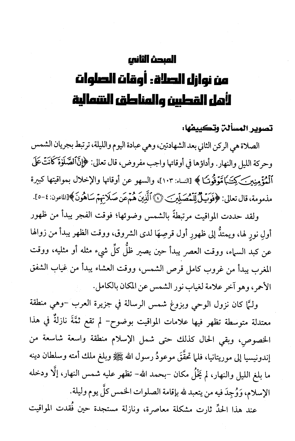 من نوازل الصلاة: أوقات الصلوات لأهل القطبين والمناطق الشمالية