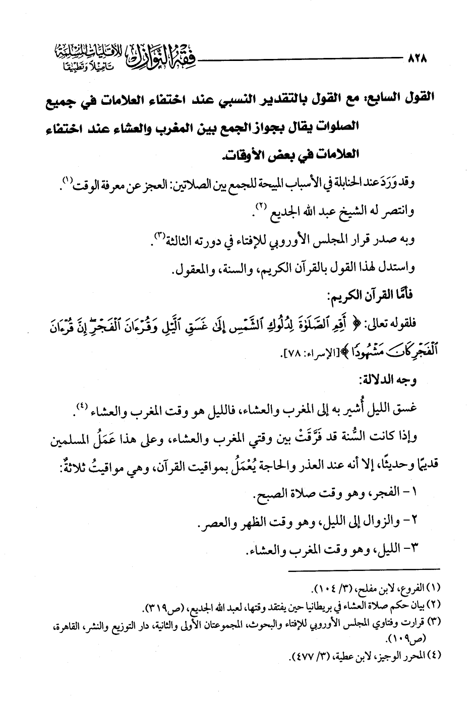 (¬2) بيان حكم صلاة العشاء في بريطانيا حين يفتقد وقتها، لعبد الله الجديع، (ص 319).
