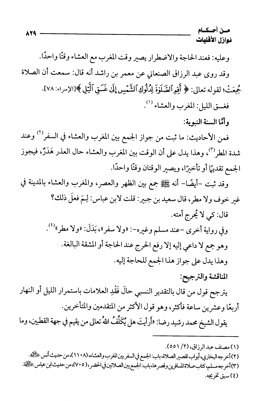 (¬3) أخرجه مسلم، كتاب صلاة المسافرين وقصرها، باب: الجمع بين الصلاتين في الحضر، (705)، من حديث ابن عباس -رضي الله عنهما-.