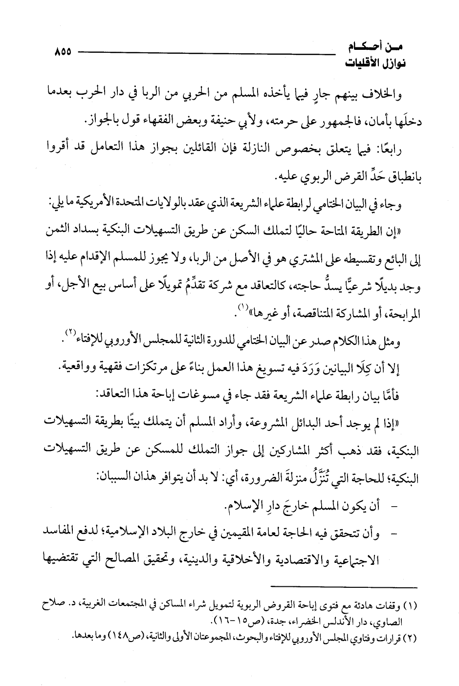 (¬1) وقفات هادئة مع فتوى إباحة القروض الربوية لتمويل شراء المساكن في المجتمعات الغربية، د. صلاح الصاوي، دار الأندلس الخضراء، جدة، (ص 15 - 16).