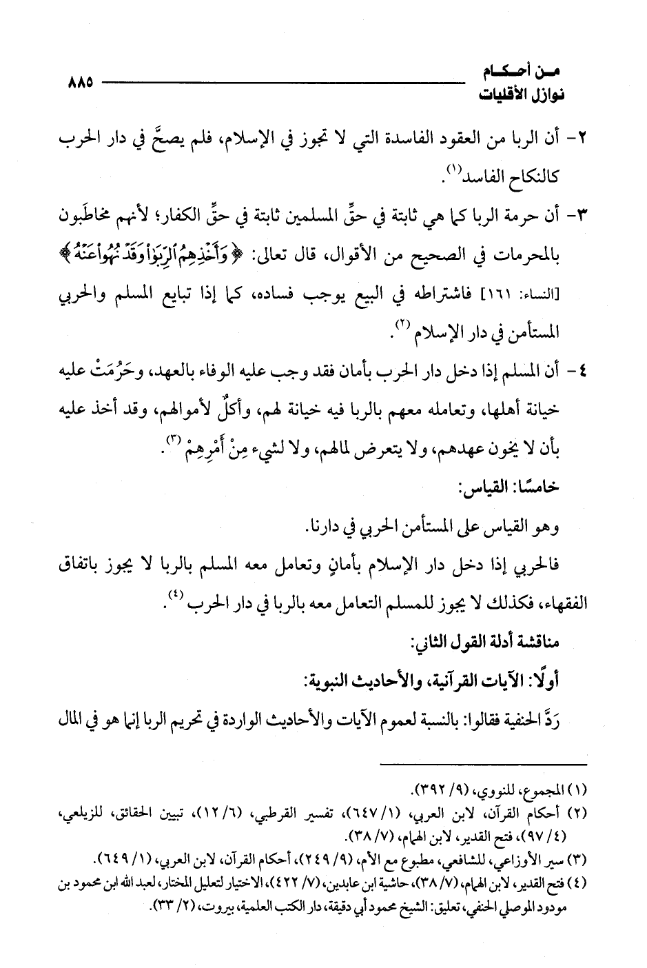 3 - أن حرمة الربا كما هي ثابتة في حقِّ المسلمين ثابتة في حقِّ الكفار؛ لأنهم مخاطَبون بالمحرمات في الصحيح من الأقوال، قال تعالى: {وَأَخْذِهِمُ الرِّبَا وَقَدْ نُهُوا عَنْهُ} [النساء: 161] فاشتراطه في البيع يوجب فساده، كما إذا تبايع المسلم والحربي المستأمن في دار الإسلام (¬2).
