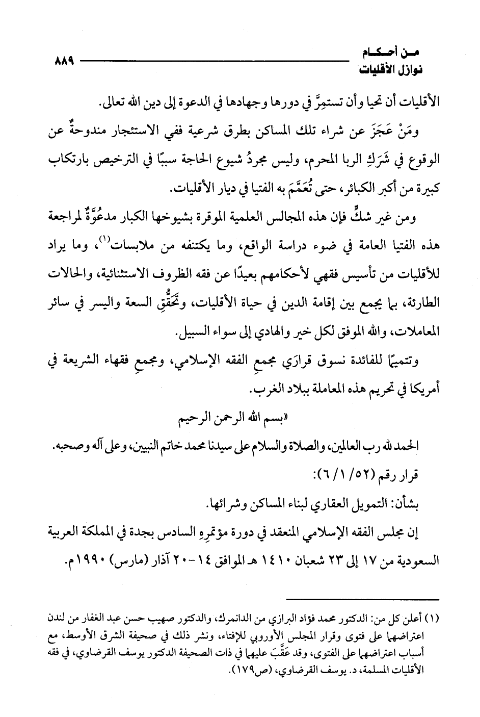 إن مجلس الفقه الإسلامي المنعقد في دورة مؤتمرِهِ السادس بجدة في المملكة العربية السعودية من 17 إلى 23 شعبان 1410 هـ الموافق 14 - 20 آذار (مارس) 1990 م.