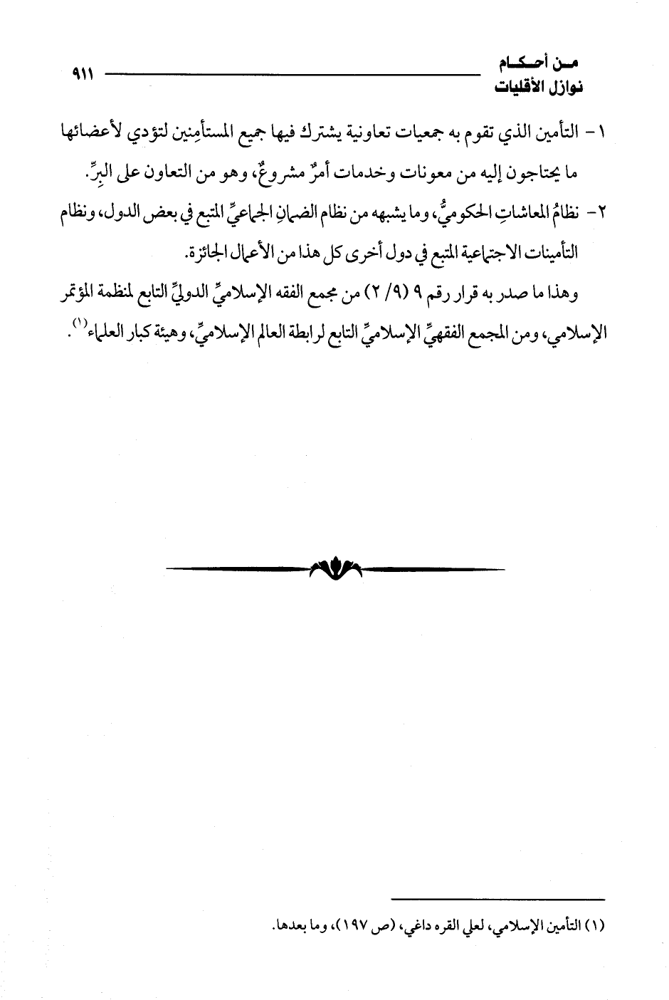 (¬1) التأمين الإسلامي، لعلي القره داغي، (ص 197)، وما بعدها.