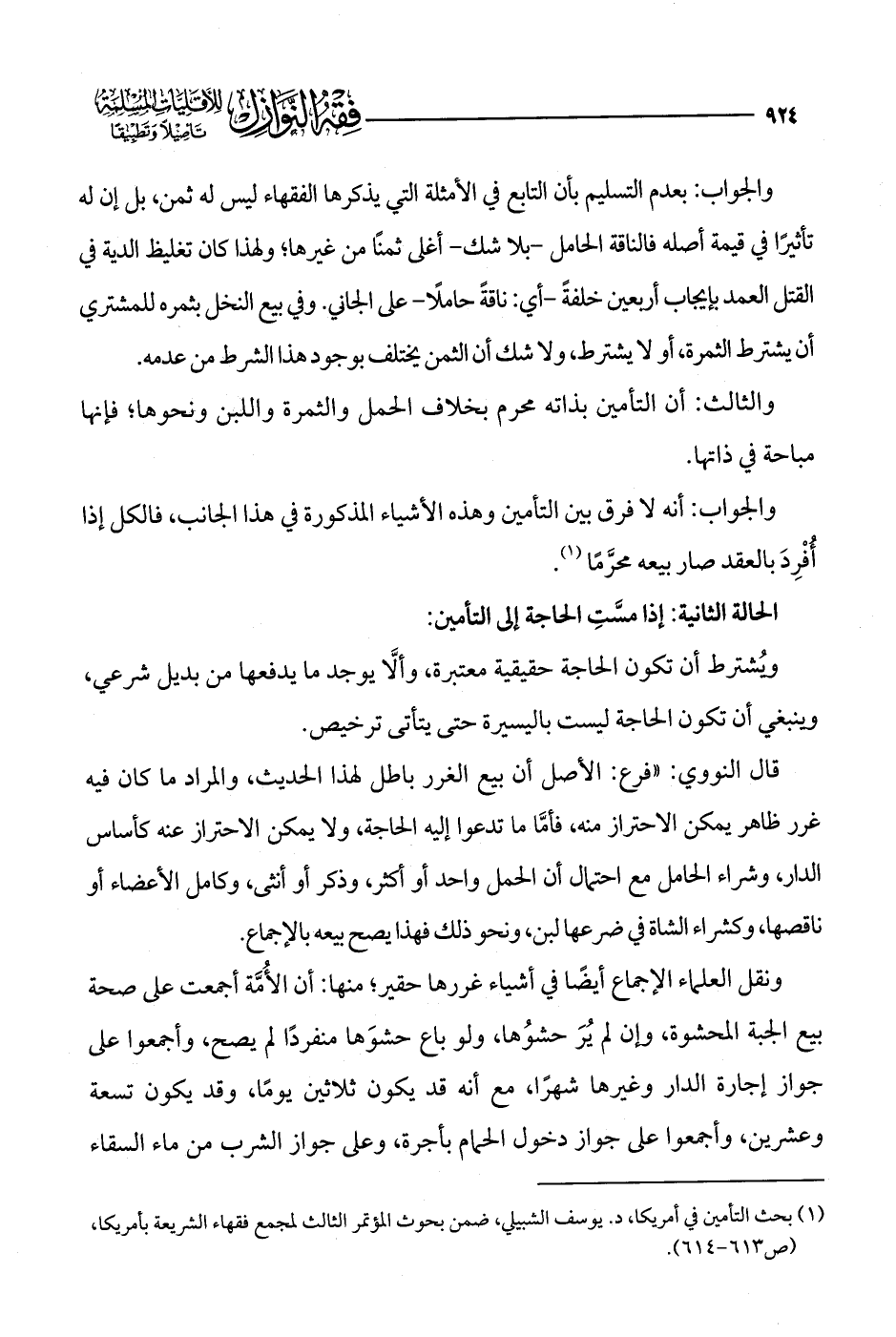 (¬1) بحث التأمين في أمريكا، د. يوسف الشبيلي، ضمن بحوث المؤتمر الثالث لمجمع فقهاء الشريعة بأمريكا، (ص 613 - 614).