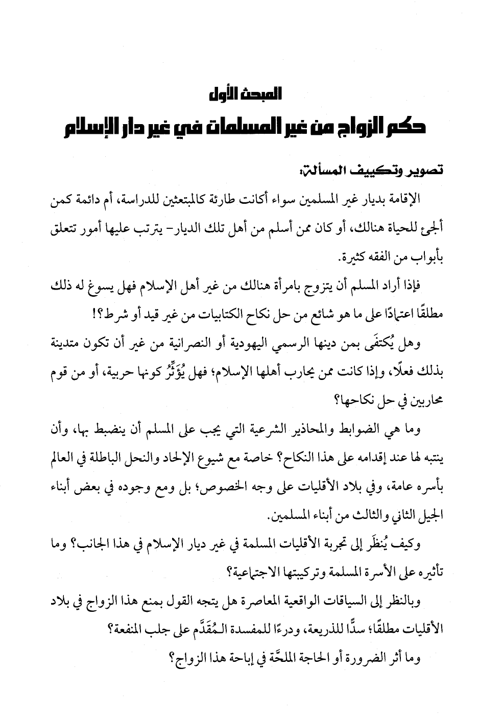 وبالنظر إلى السياقات الواقعية المعاصرة هل يتجه القول بمنع هذا الزواج في بلاد الأقليات مطلقًا؛ سدًّا للذريعة، ودرءًا للمفسدة المُقَدَّم على جلب المنفعة؟