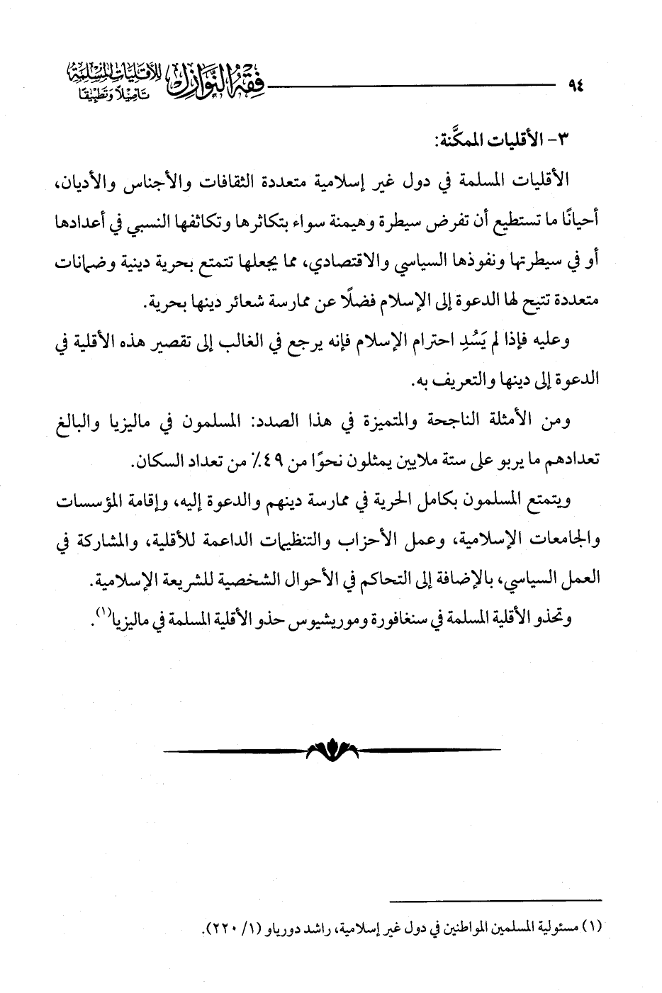(¬1) مسئولية المسلمين المواطنين في دول غير إسلامية، راشد دورياو (1/ 220).