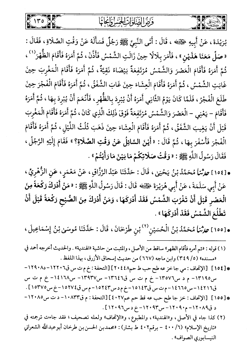 154- حَدَّثَنَا مُحَمَّدُ بْنُ يَحْيَى، قَالَ: حَدَّثَنَا عَبْدُ الرَّزَّاقِ، عَنْ مَعْمَرٍ، عَنِ الزُّهْرِيِّ، عَنْ أَبِي سَلَمَةَ، عَنْ أَبِي هُرَيْرَةَ، رَضِيَ اللهُ عَنْهُ، قَالَ: قَالَ رَسُولُ اللهِ صَلى الله عَليه وسَلم: مَنْ أَدْرَكَ رَكْعَةً مِنَ الْعَصْرِ قَبْلَ أَنْ تَغْرُبَ الشَّمْسُ فَقَدْ أَدْرَكَهَا وَمَنْ أَدْرَكَ مِنَ الصُّبْحِ رَكْعَةً قَبْلَ أَنْ تَطْلُعَ الشَّمْسُ فَقَدْ أَدْرَكَهَا.