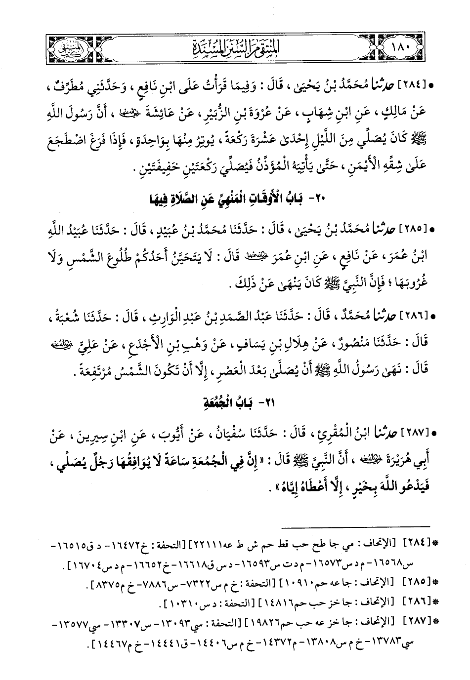 285- حَدَّثَنَا مُحَمَّدُ بْنُ يَحْيَى، قَالَ: حَدَّثَنَا مُحَمَّدُ بْنُ عُبَيْدٍ، قَالَ: حَدَّثَنَا عُبَيْدُ اللهِ بْنُ عُمَرَ، عَنْ نَافِعٍ، عَنِ ابْنِ عُمَرَ، رَضِيَ اللهُ عَنْهُمَا، قَالَ: لاَ يَتَحَيَّنُ أَحَدُكُمْ طُلُوعَ الشَّمْسِ وَلاَ غُرُوبَهَا، فَإِنَّ النَّبِيَّ صَلى الله عَليه وسَلم كَانَ يَنْهَى عَنْ ذَلِكَ.