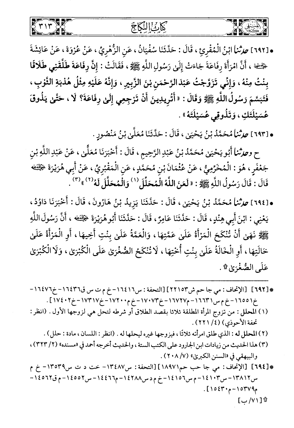693- حَدَّثَنَا مُحَمَّدُ بْنُ يَحْيَى، قَالَ: حَدَّثَنَا مُعَلَّى بْنُ مَنْصُورٍ (ح) وَحَدَّثَنَا أَبُو يَحْيَى مُحَمَّدُ بْنُ عَبْدِ الرَّحِيمِ، قَالَ: أَخْبَرَنَا مُعَلَّى، عَنْ عَبْدِ اللهِ بْنِ جَعْفَرٍ هُوَ الْمُخَرِّمِيُّ، عَنْ عُثْمَانَ بْنِ مُحَمَّدٍ، عَنِ الْمَقْبُرِيِّ، عَنْ أَبِي هُرَيْرَةَ، رَضِيَ اللهُ عَنْهُ، قَالَ: قَالَ رَسُولُ اللهِ صَلى الله عَليه وسَلم: لَعَنَ اللهُ الْمُحَلِّلَ وَالْمُحَلَّلَ لَهُ.