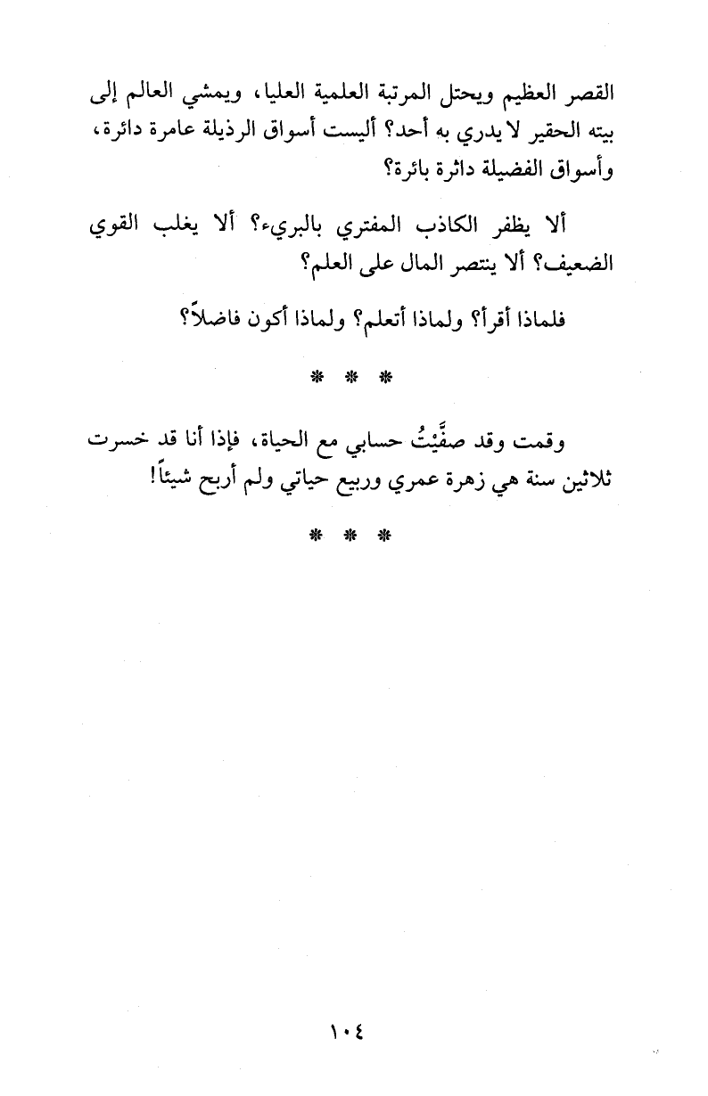 وقمت وقد صفَّيْتُ حسابي مع الحياة، فإذا أنا قد خسرت ثلاثين سنة هي زهرة عمري وربيع حياتي ولم أربح شيئاً!
