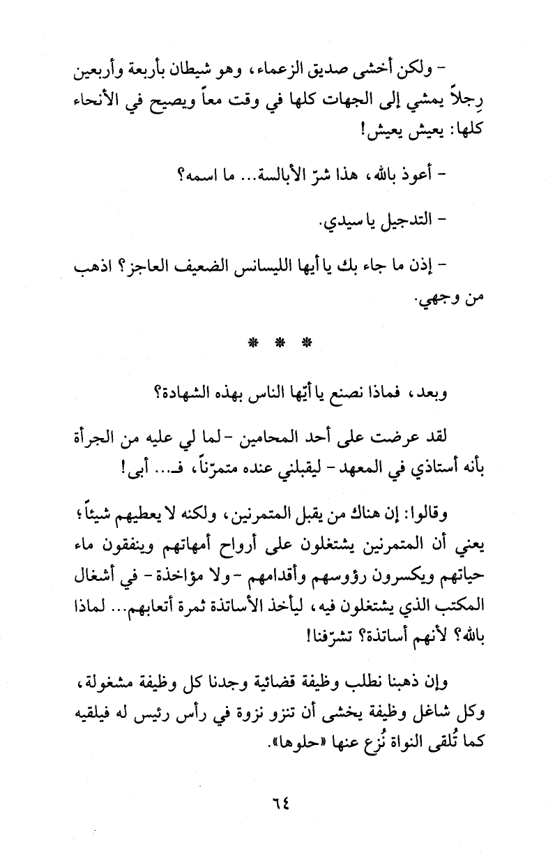- إذن ما جاء بك يا أيها الليسانس الضعيف العاجز؟ اذهب من وجهي.