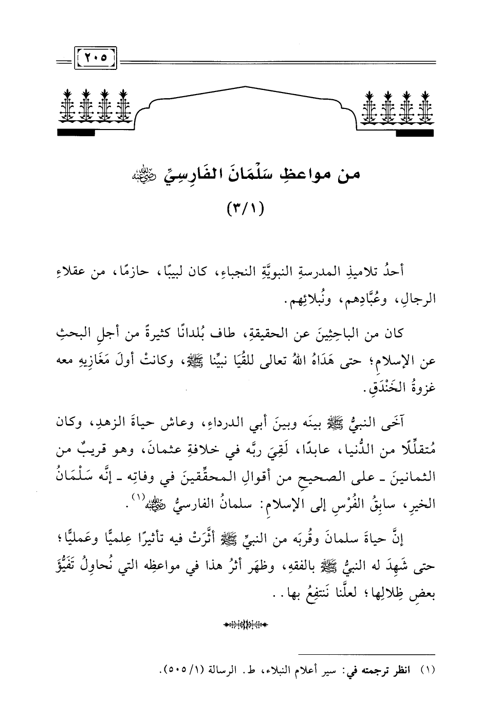 من مواعظ سلمان الفارسيِّ - رضي الله عنه -