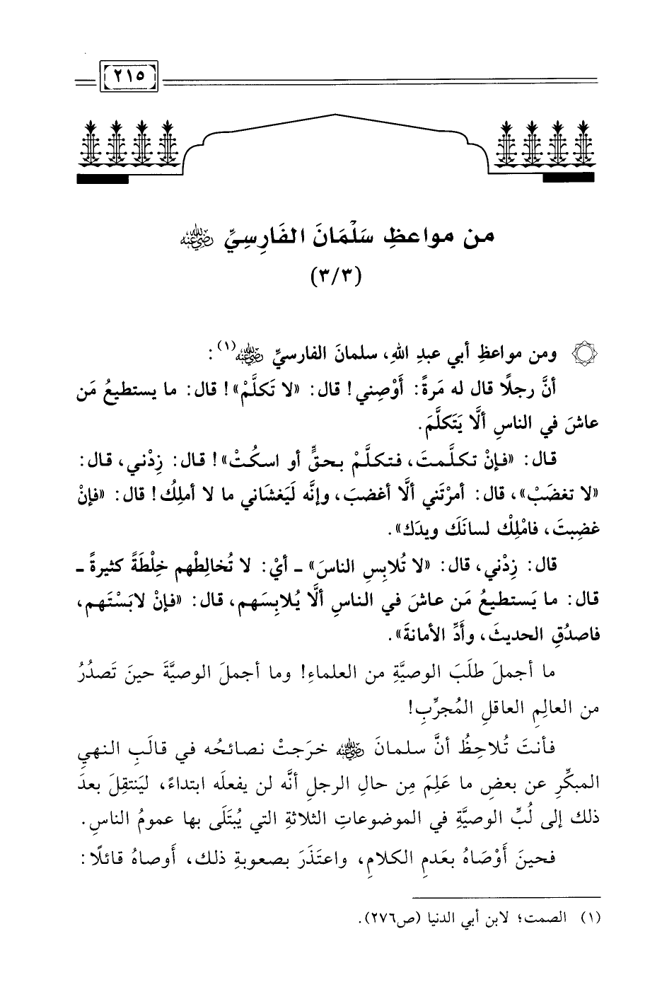 (¬1) الصمت؛ لابن أبي الدنيا (ص276).