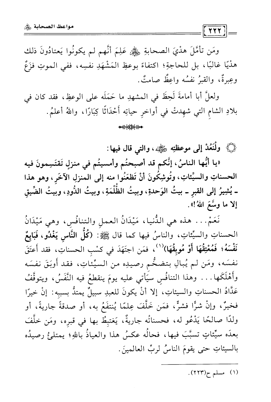 • ولنعد إلى موعظته - رضي الله عنه -، والتي قال فيها: