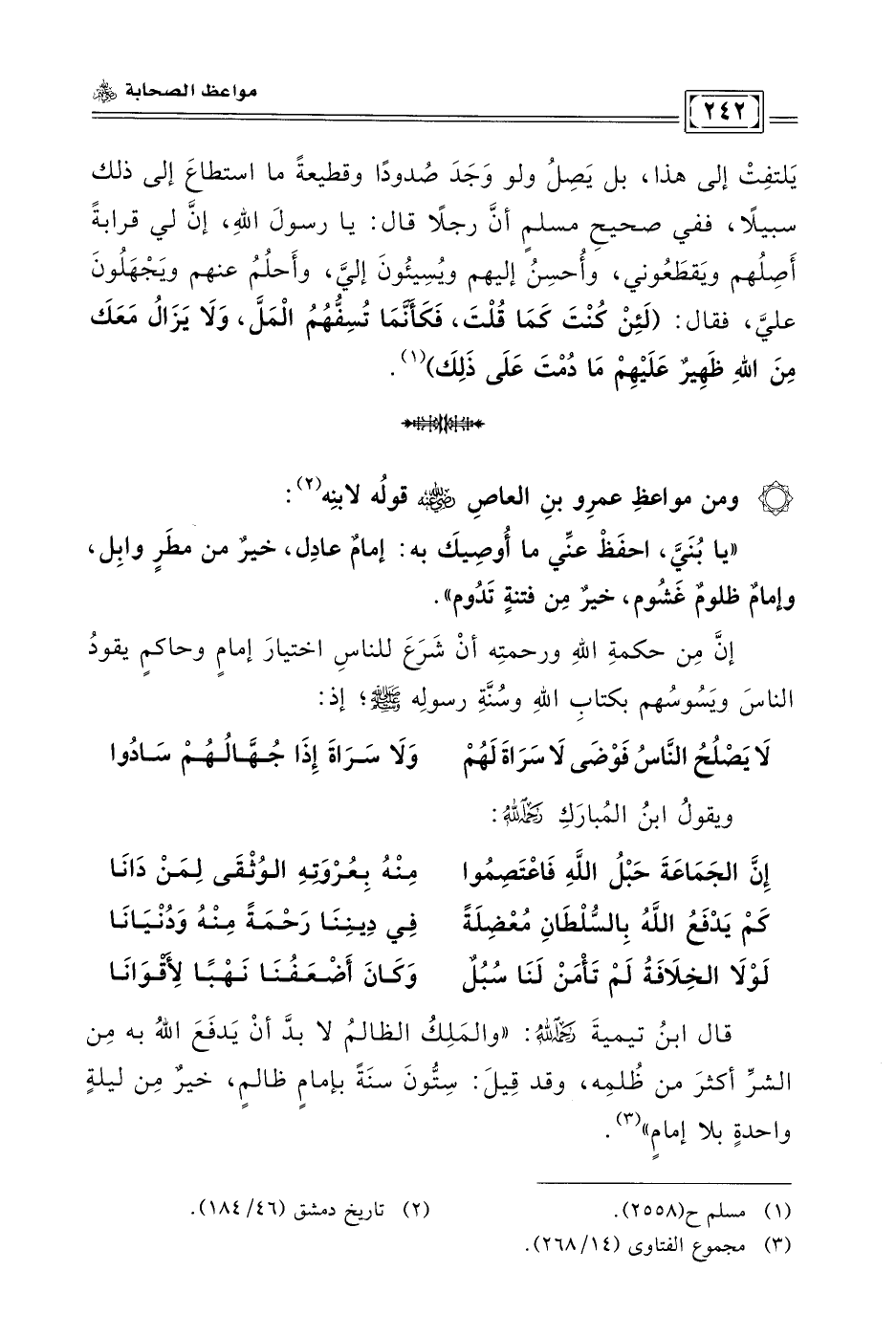 • ومن مواعظ عمرو بن العاص - رضي الله عنه - قوله لابنه (¬2):
