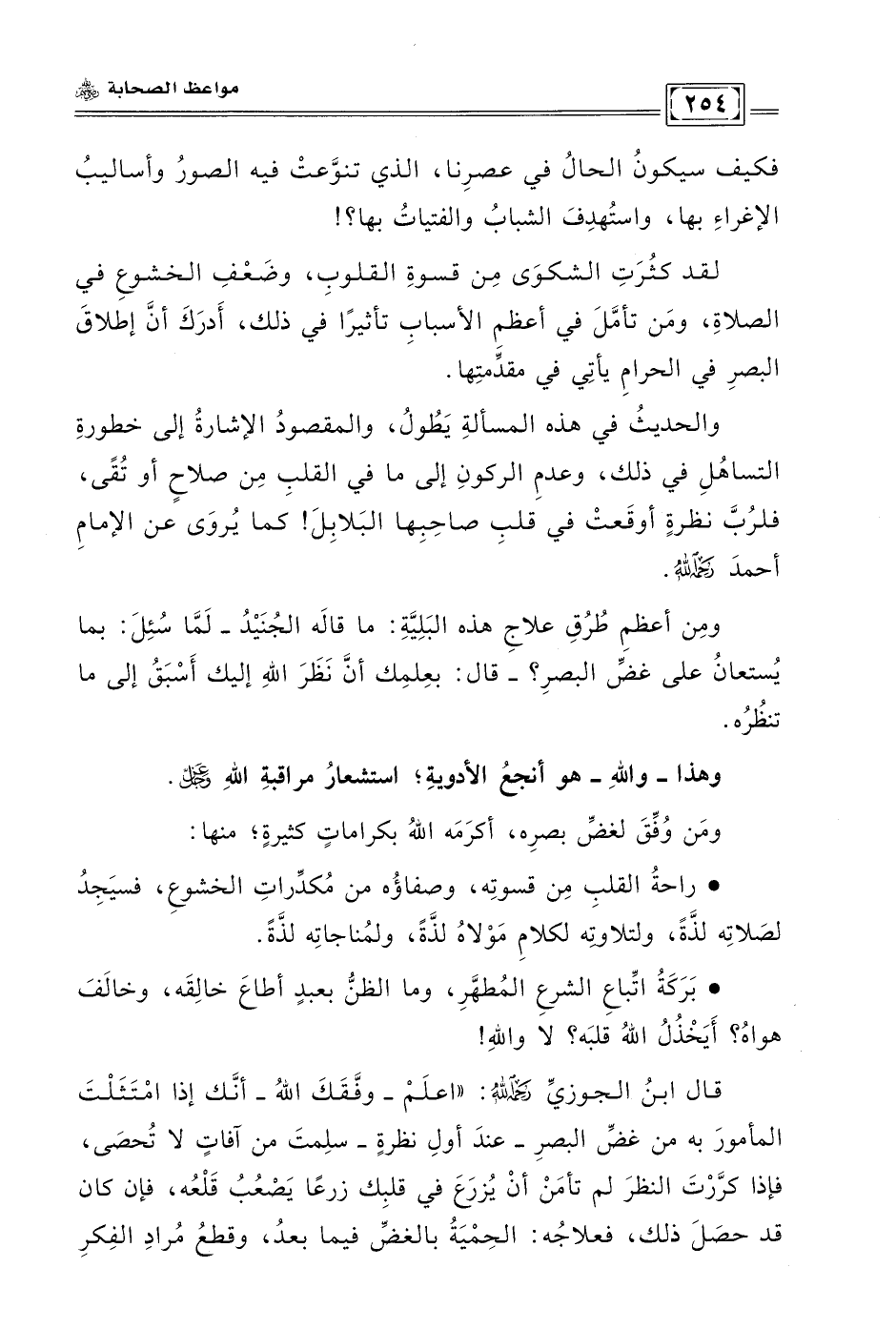 والحديث في هذه المسألة يطول، والمقصود الإشارة إلى خطورة التساهل في ذلك، وعدم الركون إلى ما في القلب من صلاحٍ أو تُقًى، فلربَّ نظرةٍ أوقعت في قلب صاحبها البلابل! كما يروى عن الإمام أحمد رحمه الله.