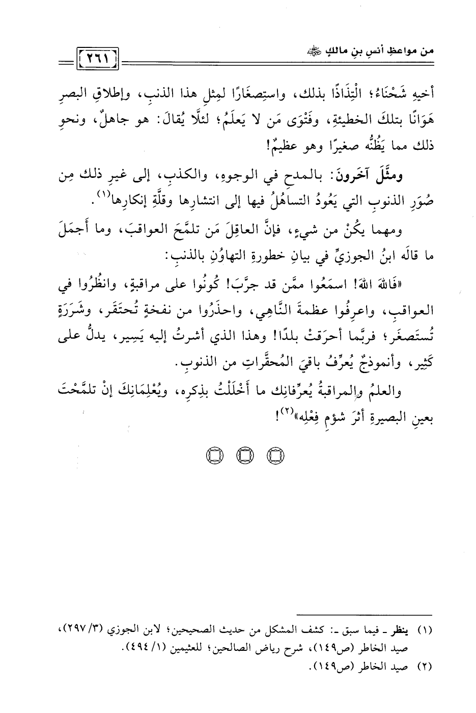 صيد الخاطر (ص 149)، شرح رياض الصالحين؛ للعثيمين (1/ 494).