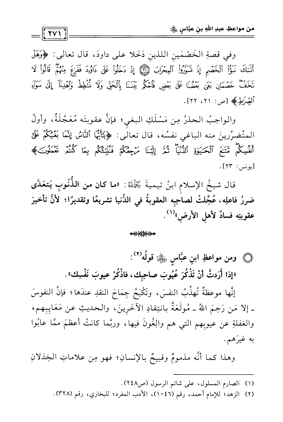 • ومن مواعظ ابن عبَّاسٍ رضي الله عنهما قوله (¬2):