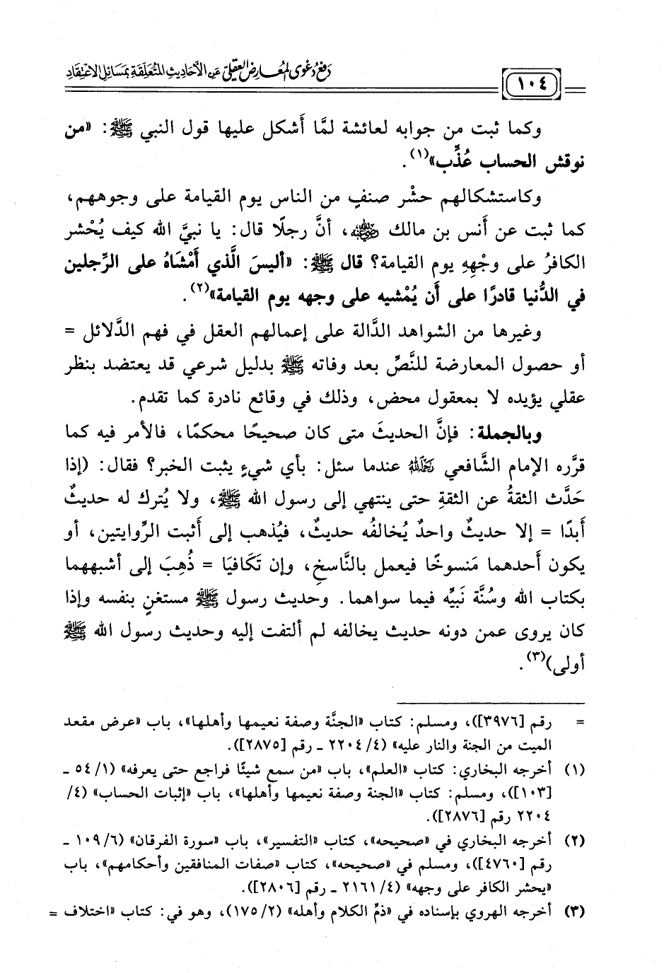 كتاب دفع دعوى المعارض العقلي عن الأحاديث المتعلقة بمسائل الاعتقاد