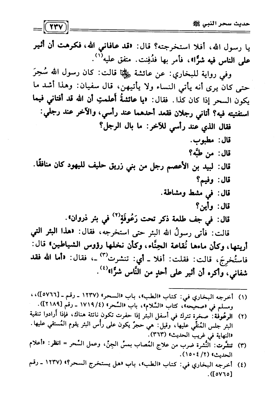 (¬٤) أخرجه البخاري في: كتاب "الطب"، باب " هل يستخرج السحر؟ " (١٢٣٧ - رقم [٥٧٦٥])