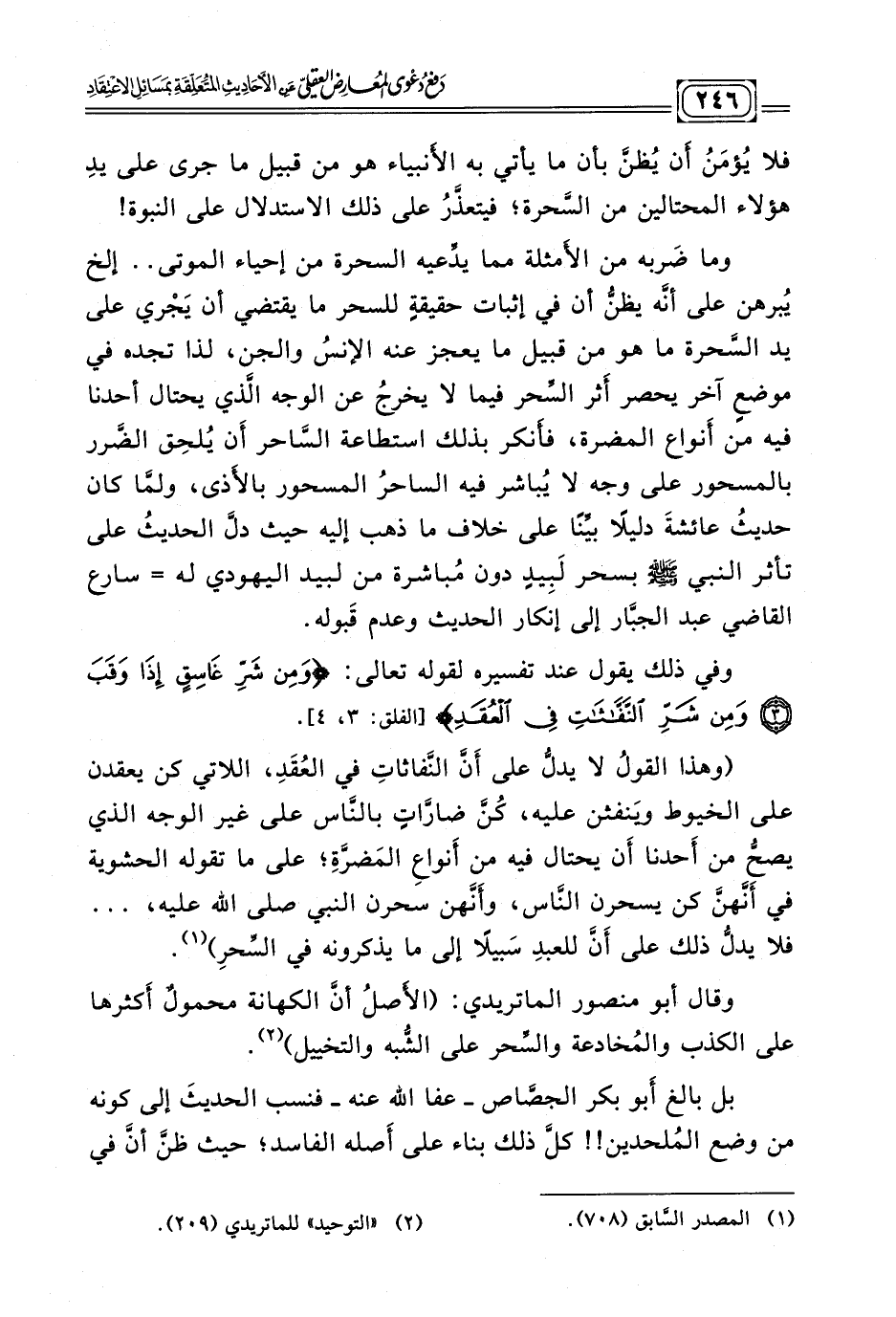 فلا يُؤمَنُ أَن يُظنَّ بأن ما يأتي به الأَنبياء هو من قبيل ما جرى على يدِ هؤلاء المحتالين من السَّحرة؛ فيتعذَّرُ على ذلك الاستدلال على النبوة!