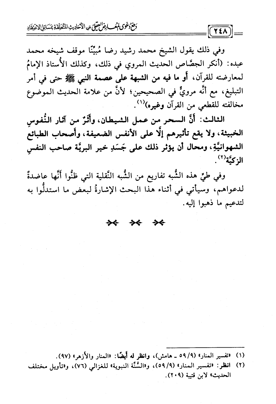 (¬٢) انظر: "تفسير المنار" (٩/ ٥٩)، و"السنة النبوية" للغزالي (٧٦)، و" تأويل مختلف الحديث" لابن قتيبة (٢٠٩)
