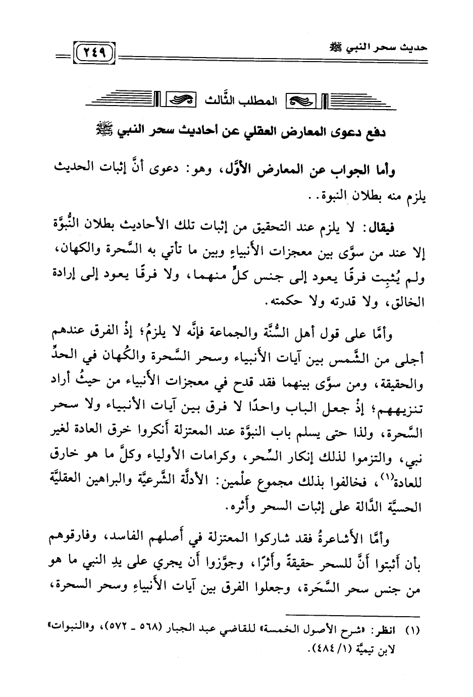 (¬١) انظر: "شرح الأصول الخمسة"للقاضي عبدالجبار (٥٦٨ - ٥٧٢)، و"النبوات "لابن تيميَّة (١/ ٤٨٤)