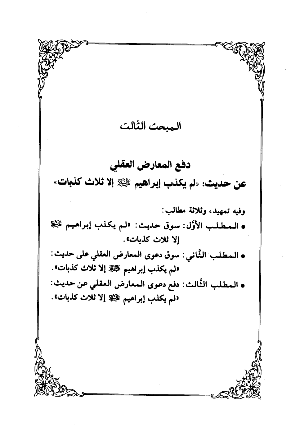 المبحث الثّالث دفع المعارض العقلي عن حديث (لم يكذب إبراهيم عليه السلام إلا ثلاث كذبات)