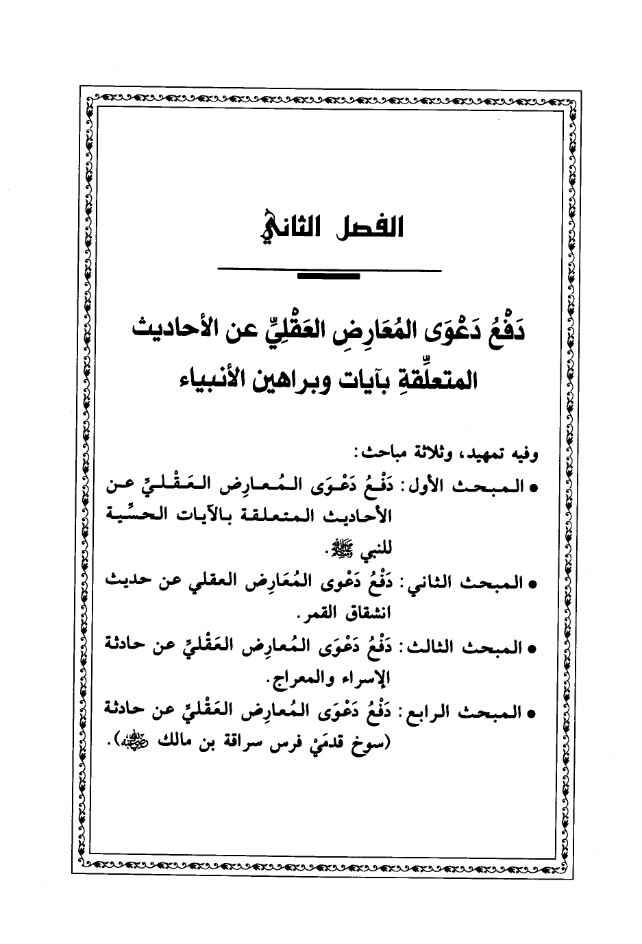 الفصل الثاني دَفْعُ دَعْوَى المُعَارِضِ العَقْلِيِّ عن الأحاديث المتعلّقةِ بآيات وبراهين الأنبياء