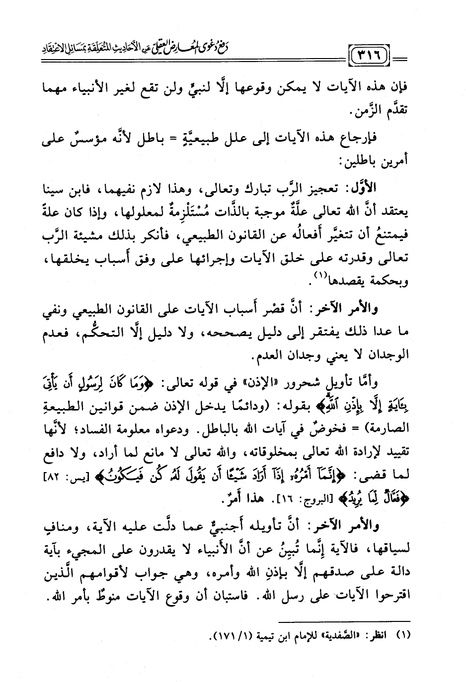 فإرجاع هذه الآيات إلى علل طبعيَّةٍ =باطل لأنّه مؤسسٌ على أمرين باطلين: