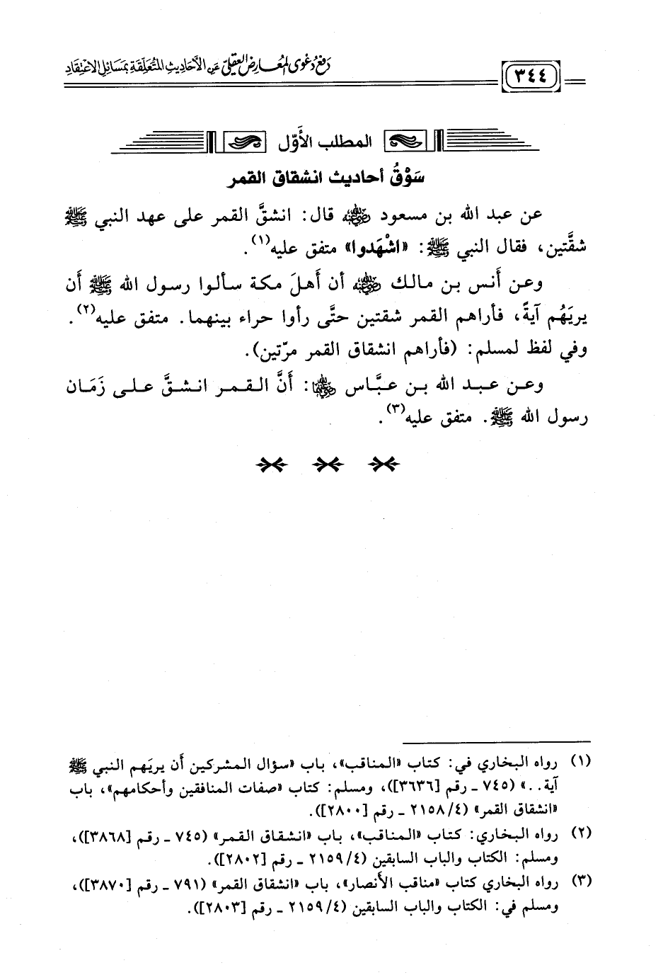 لمطلب الأَوّل: سَوْقُ أحاديث انشقاق القمر: