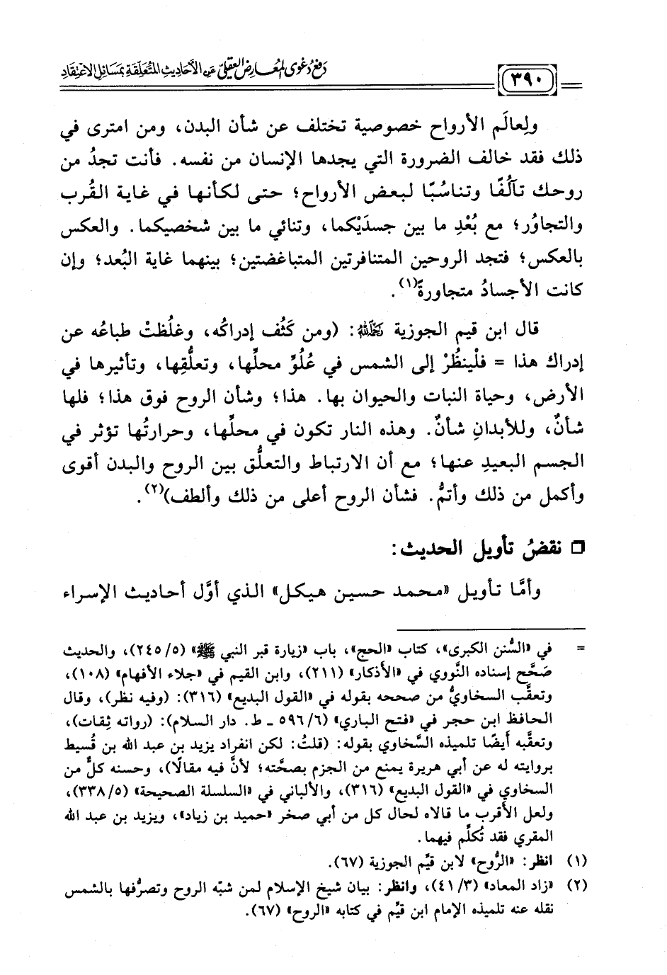 (¬٢) "زاد المعاد" (٣/ ٤١) وانظر بيان شيخ الإسلام لمن شبّه الروح وتصرُّفها بالشمس نقله عنه تلميذه الإمام ابن قيِّم في كتابه "الروح" (٦٧)