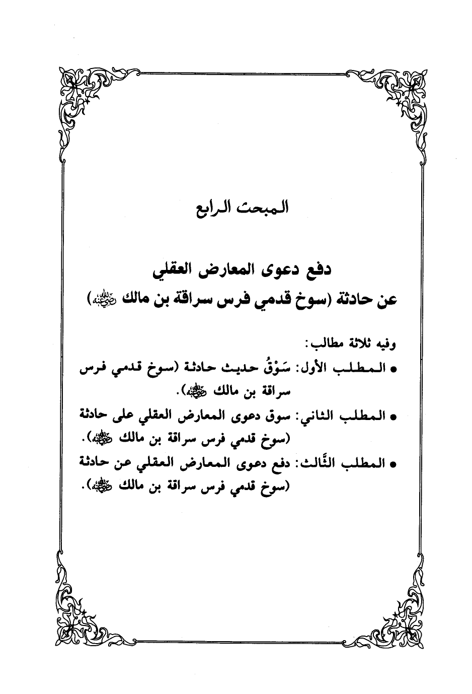 المبحث الرابع دفع دعوى المعارض العقلي عن حادثة (سوخ قدمي فرس سراقة بن مالك - رضي الله عنه -)