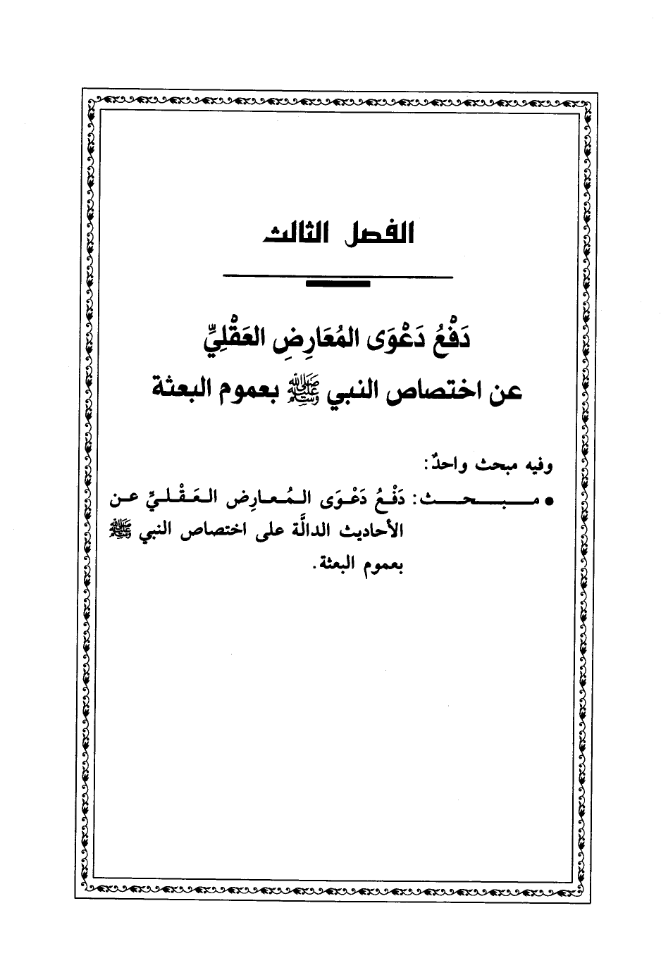 الفصل الثالث دَفْعُ دَعْوَى المُعَارِضِ العَقْلِيِّ عن اختصاص النبي - صلى الله عليه وسلم - بعموم البعثة