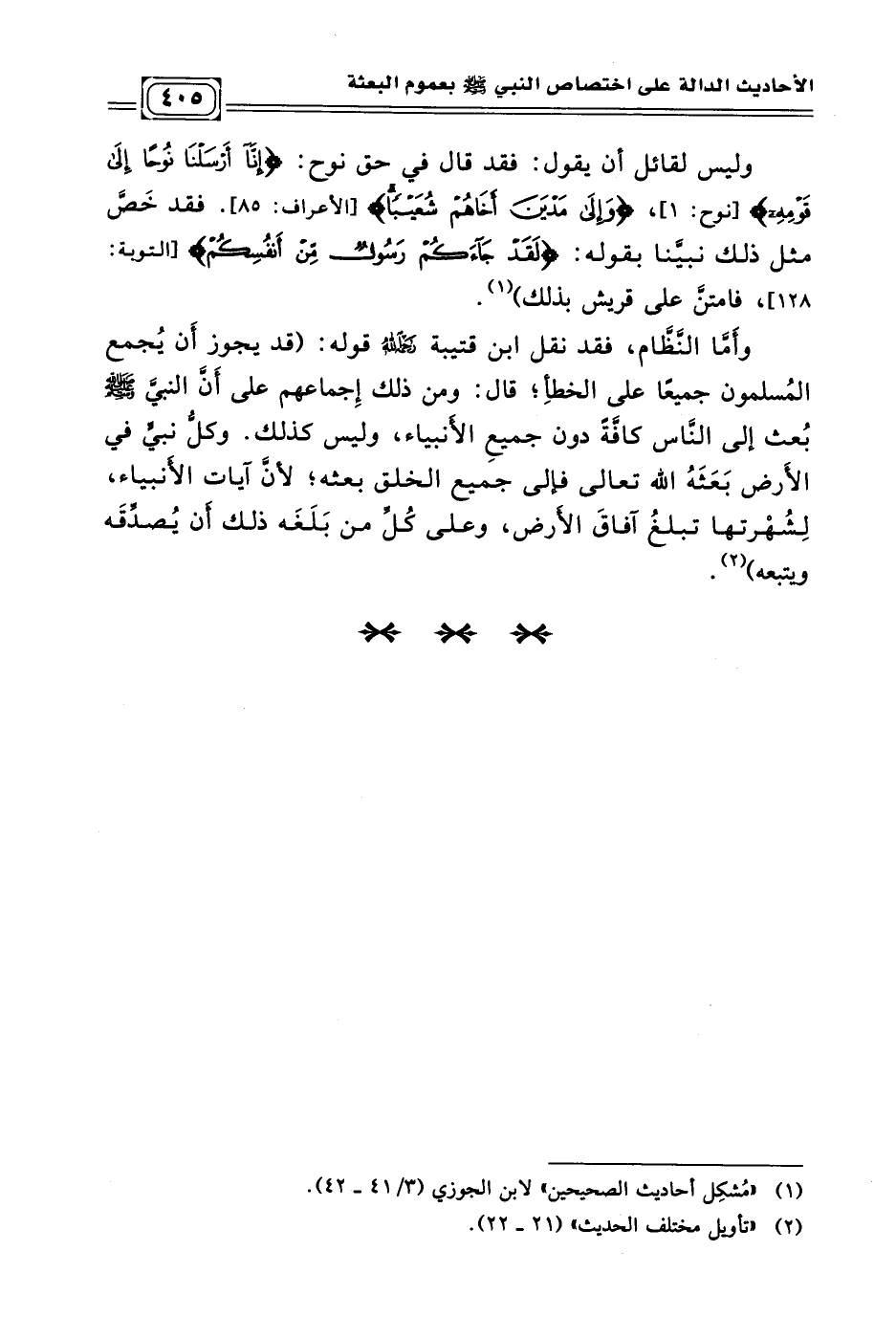 (¬٢) "تأويل مختلف الحديث" (٢١ - ٢٢) .