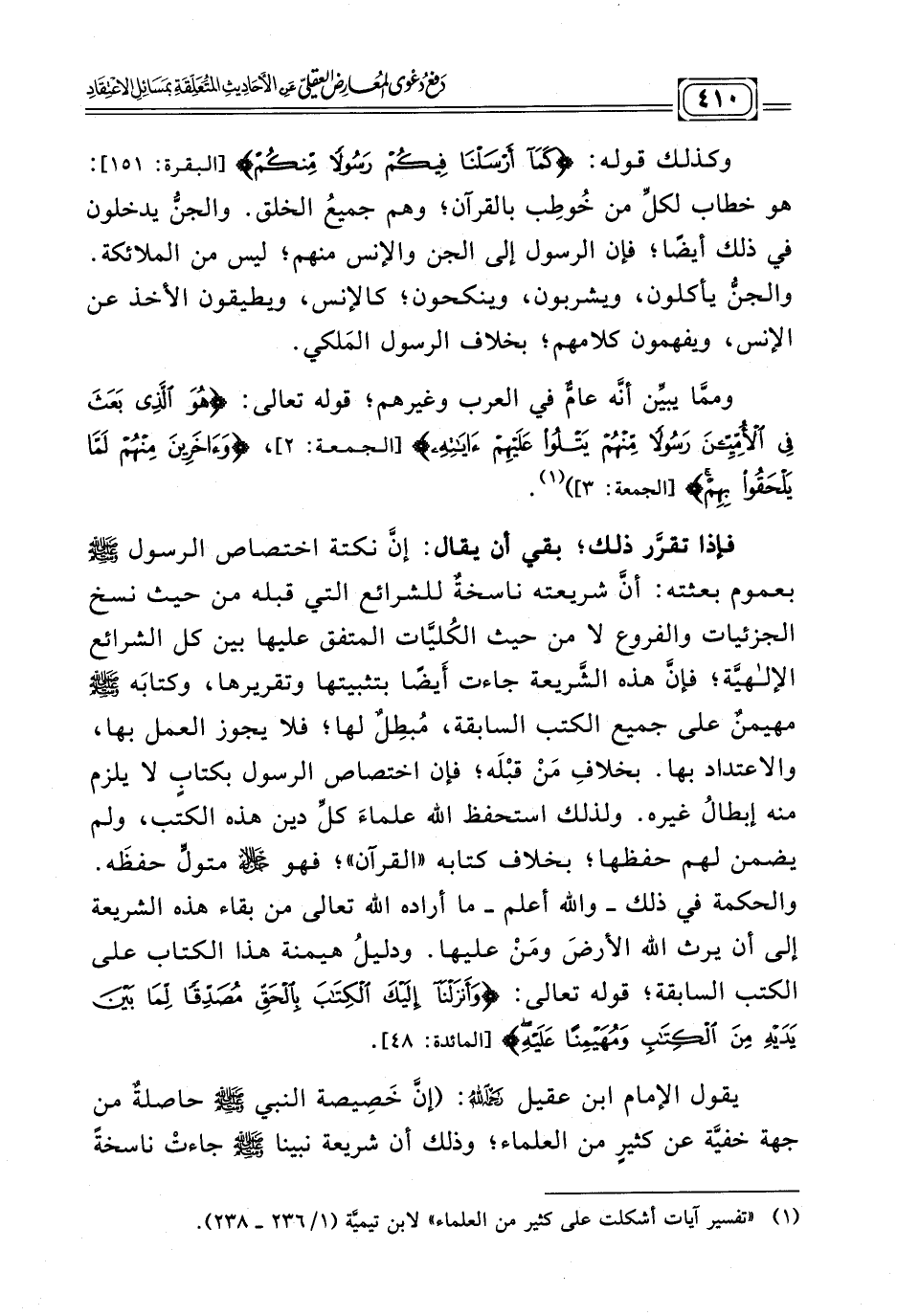(¬١) "تفسير آيات أشكلت على كثير من العلماء"لابن تيميَّة (١/ ٢٣٦ - ٢٣٨)