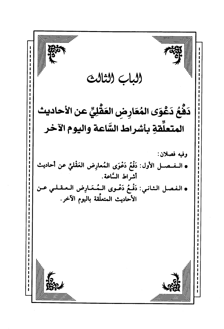 الباب الثالث دَفْعُ دَعْوَى المُعَارِضِ العَقْلِيِّ عن الأحاديث المتعلّقةِ بأشراط السَّاعة واليوم الآخر