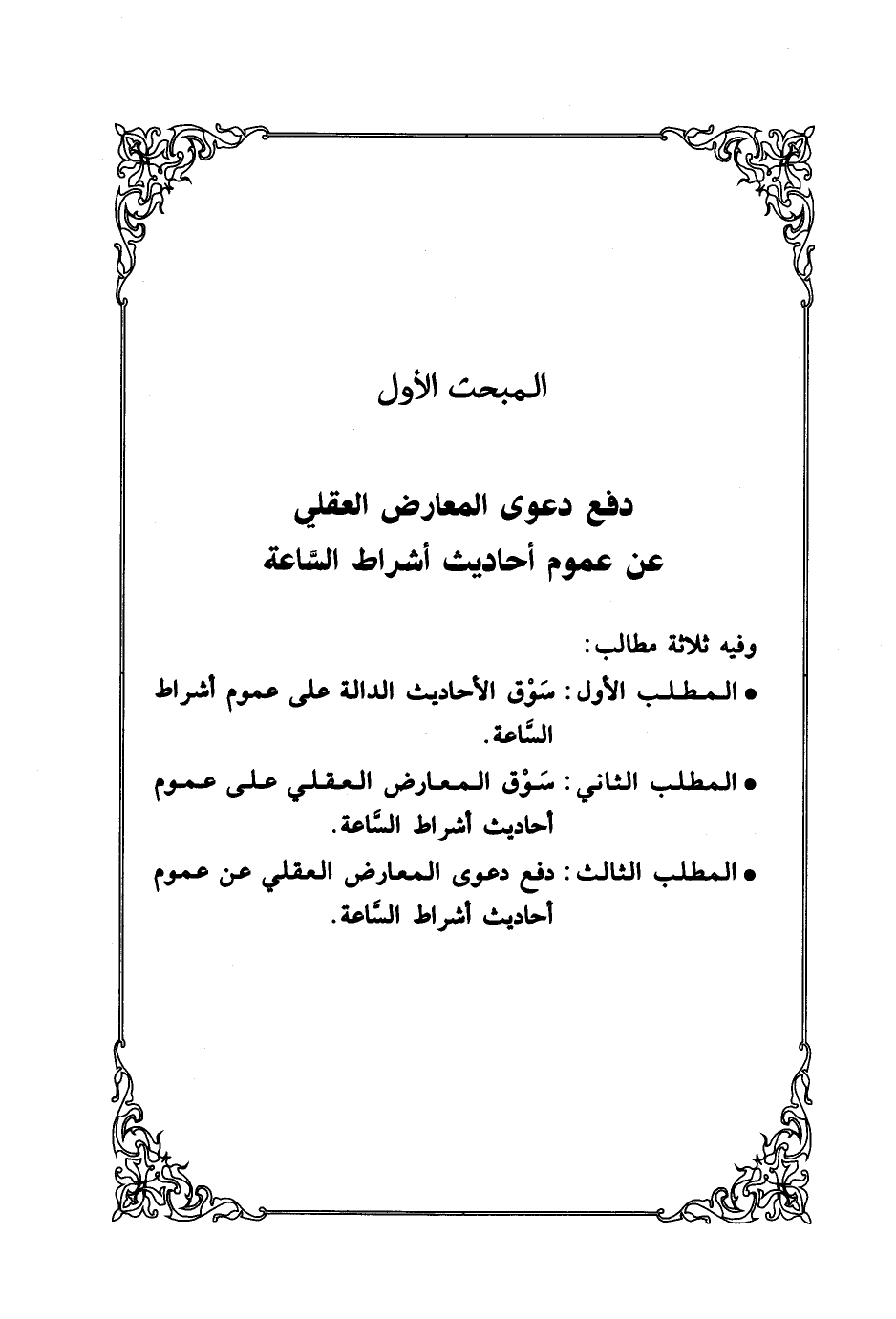 المبحث الأول دفع دعوى المعارض العقلي عن عموم أحاديث أشراط السَّاعة